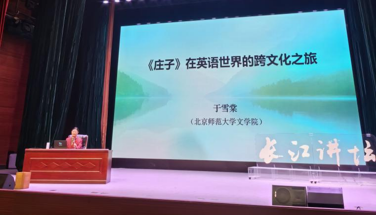 本次讲座以“《庄子》在英语世界的跨文化之旅”为主题,由北京师范大学文学院于雪棠教授主讲。于教授回溯《庄子》在英语世界的译介与研究历程,以“道”“逍遥”“无为”等核心概念为例,对比不同译者的翻译路径与学术取向,揭示翻译行为背后的文化立场与思想逻辑。在场学生认真聆听、积极思考,在对比分析中逐渐认识到,文学翻译是在忠实原意与适应目标文化之间不断权衡的创造性实践。通过将素养提升教育融入专业学习,同学们深化了对中国经典跨文化传播的理解,也为“如何用外语讲好中国故事”积累了生动范例。
