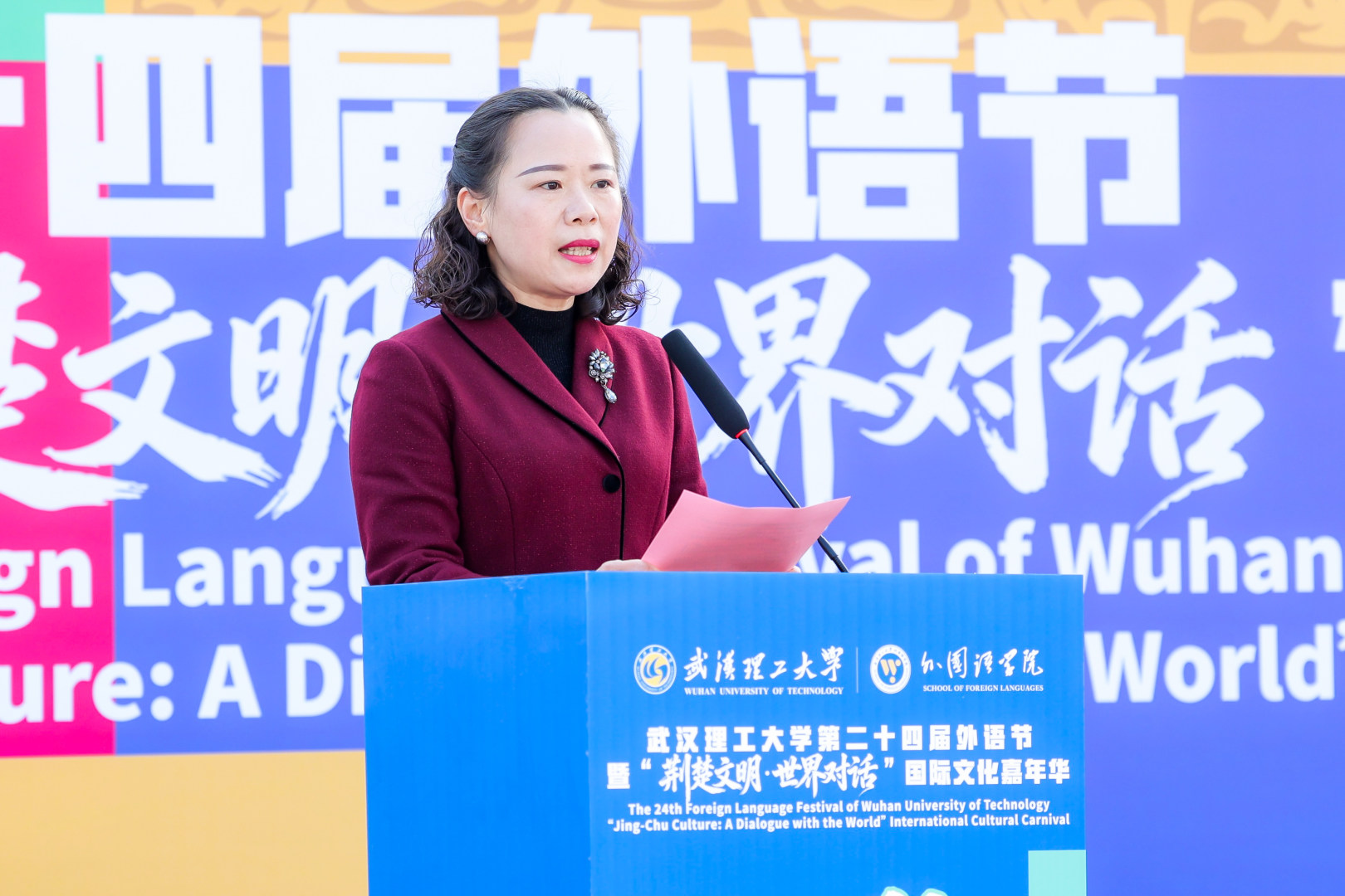 千年荆韵,对话世界。11月20日,武汉理工大学第二十四届外语节暨“荆楚文明·世界对话”文化嘉年华,在南湖校区博学广场正式开幕。校党委常委、副校长李政颖出席活动并致辞,他指出,外语节是学校践行文化自信、推动文明互鉴的重要平台,勉励学子以语言为舟、以文化为帆,在讲述荆楚故事的同时,搭建中国与世界沟通的桥梁。