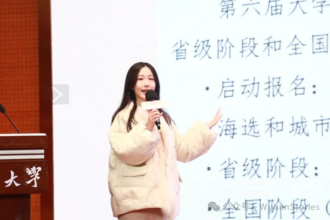 往届优秀选手、我院学生陶诗言在现场分享了参赛经验与成长收获。新航道武汉学校李梁钰老师就本届活动的阶段设置、参与方式、作品要求等具体流程进行了说明。