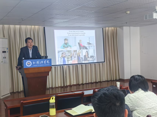 郑教授长期深耕认知翻译学与翻译神经科学领域,是国际翻译过程研究领域的知名学者,其研究成果被 SSCI、A&HCI 等核心期刊广泛收录。讲座中,他首先梳理了眼动技术的发展脉络,从早期固定头部的实验设备到如今便携化的检测系统,技术迭代使生态效度持续提升,应用场景也从实验室延伸至航空模拟、医学观察等多个领域。