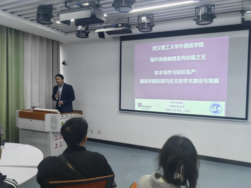 3 月 16 日下午,英国杜伦大学现代语言与文化学院终身教授、国际翻译学权威学者郑冰寒老师为学院师生做学术讲座。郑教授以 “学术写作与知识生产:翻译学国际期刊论文的学术路径与策略” 为题,与学院语言学、翻译等研究领域的师生进行了深入交流。讲座旨在破解学院教师国际期刊发表困境,助力老师们提升学术成果国际传播力。